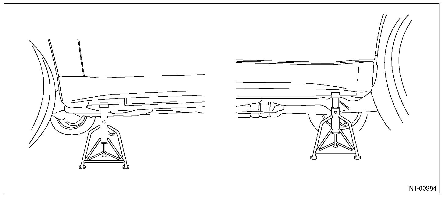 2. Jack up the rear wheels and set the rigid racks to the specified locations of side sill.