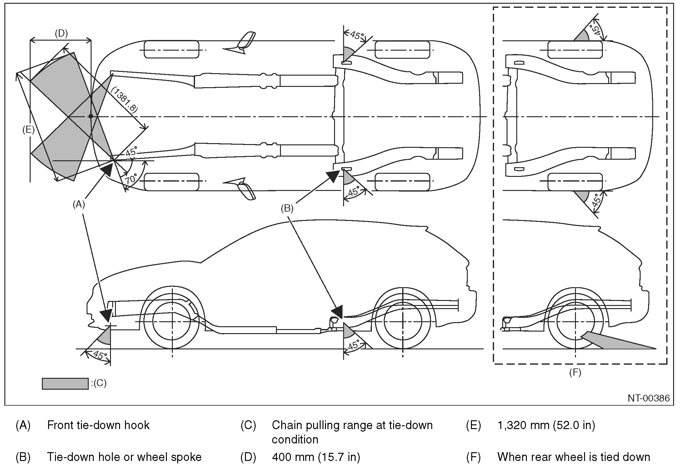 1. Tie-down range must be within the backward of rear wheel as shown in the figure.