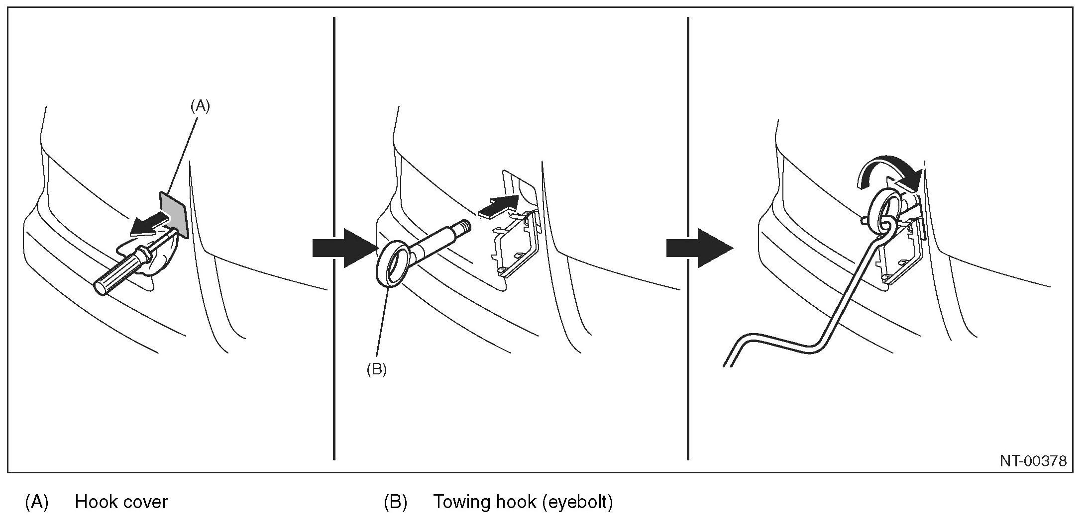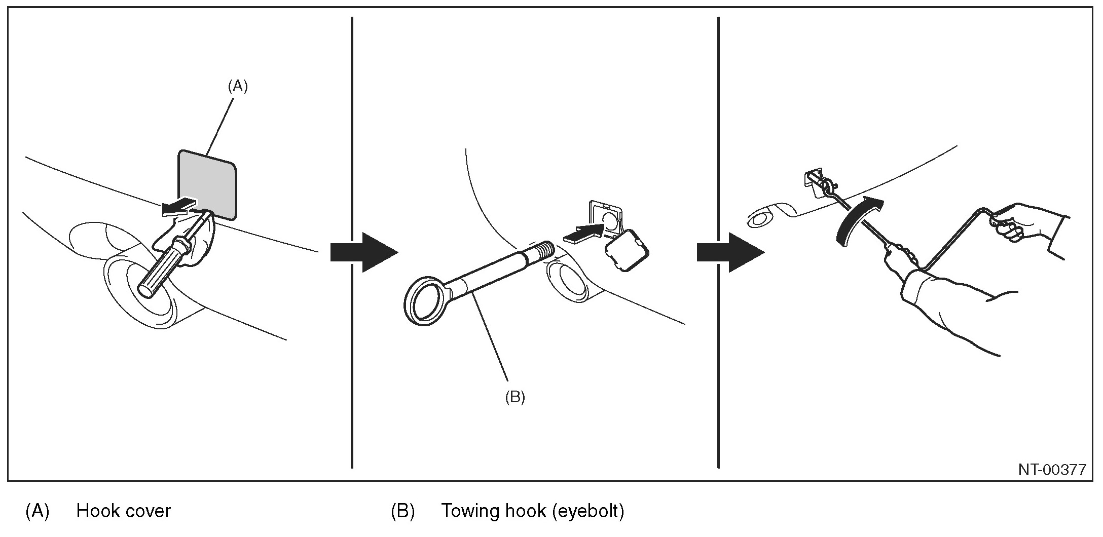 Remove the hook cover, and install the towing hook.