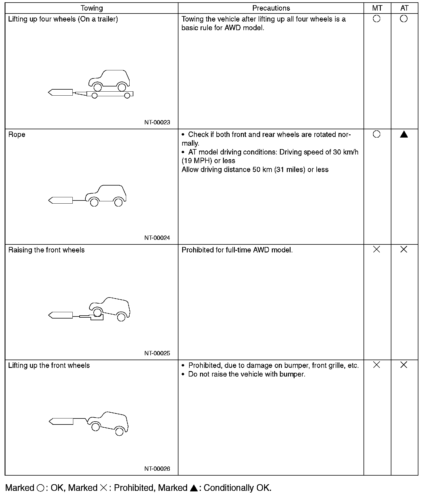 - In case of the malfunction of internal transmission or drive system, lift up four wheels (on a trailer) for towing.