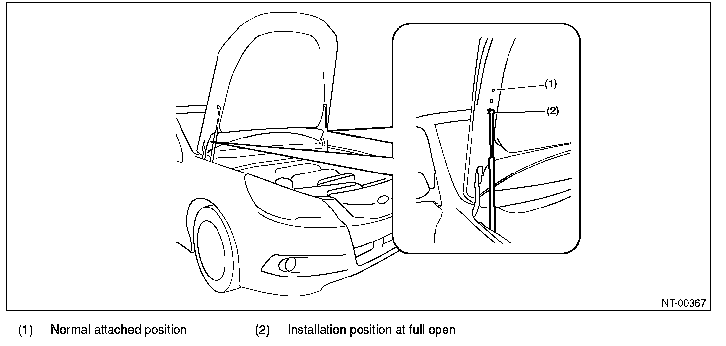 2. When wider hood opening is necessary, set the damper stay below as shown in the figure.