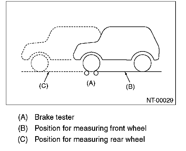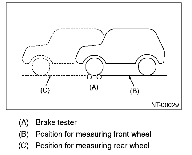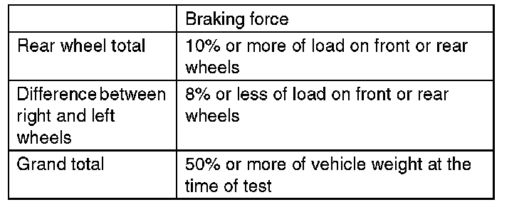 - When measurement is difficult to carry out because both of front wheels are locked, break force measurement in this condition conforms to standard grand total.
