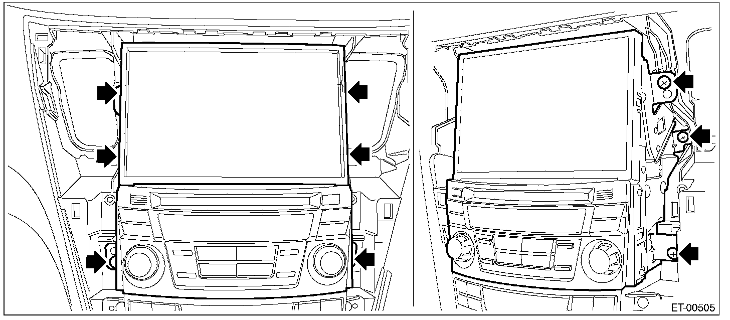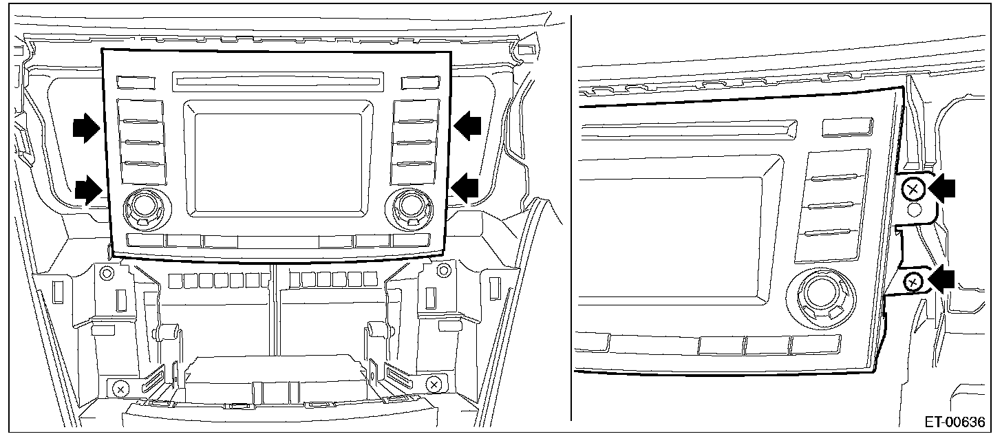 1. Remove the left and right screws, and partially pull the audio out from center console.