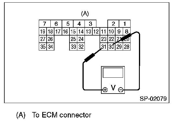 3. Measure the voltage between ECM connector terminals.