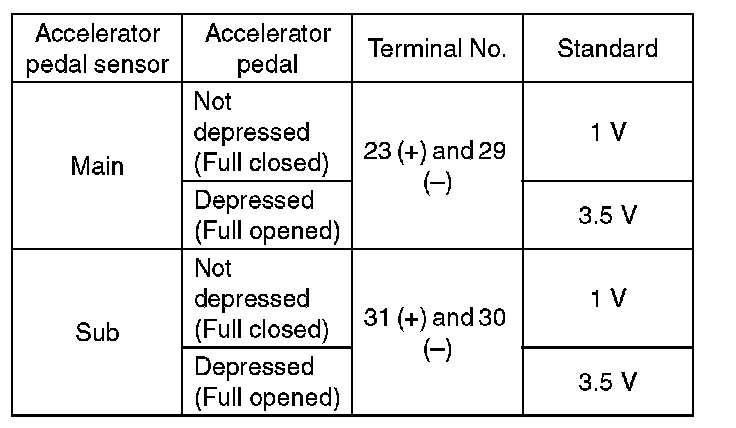 1. CHECK ACCELERATOR PEDAL SENSOR AREA (METHOD WITH CIRCUIT TESTER)