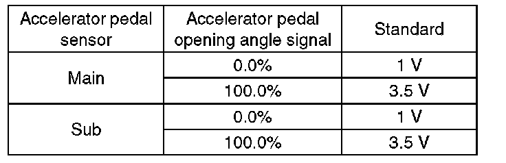 2. Read the accelerator pedal opening angle signal and voltage of accelerator pedal sensor using Subaru Select Monitor. Subaru Select Monitor