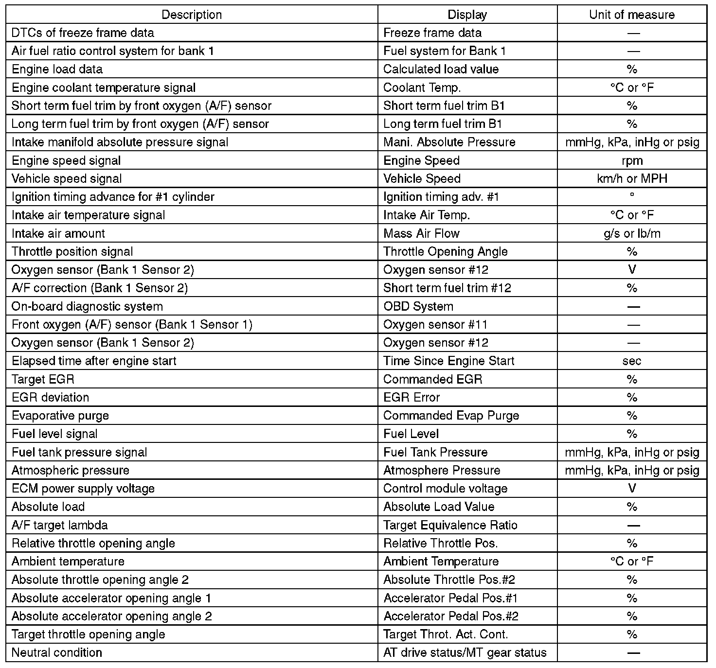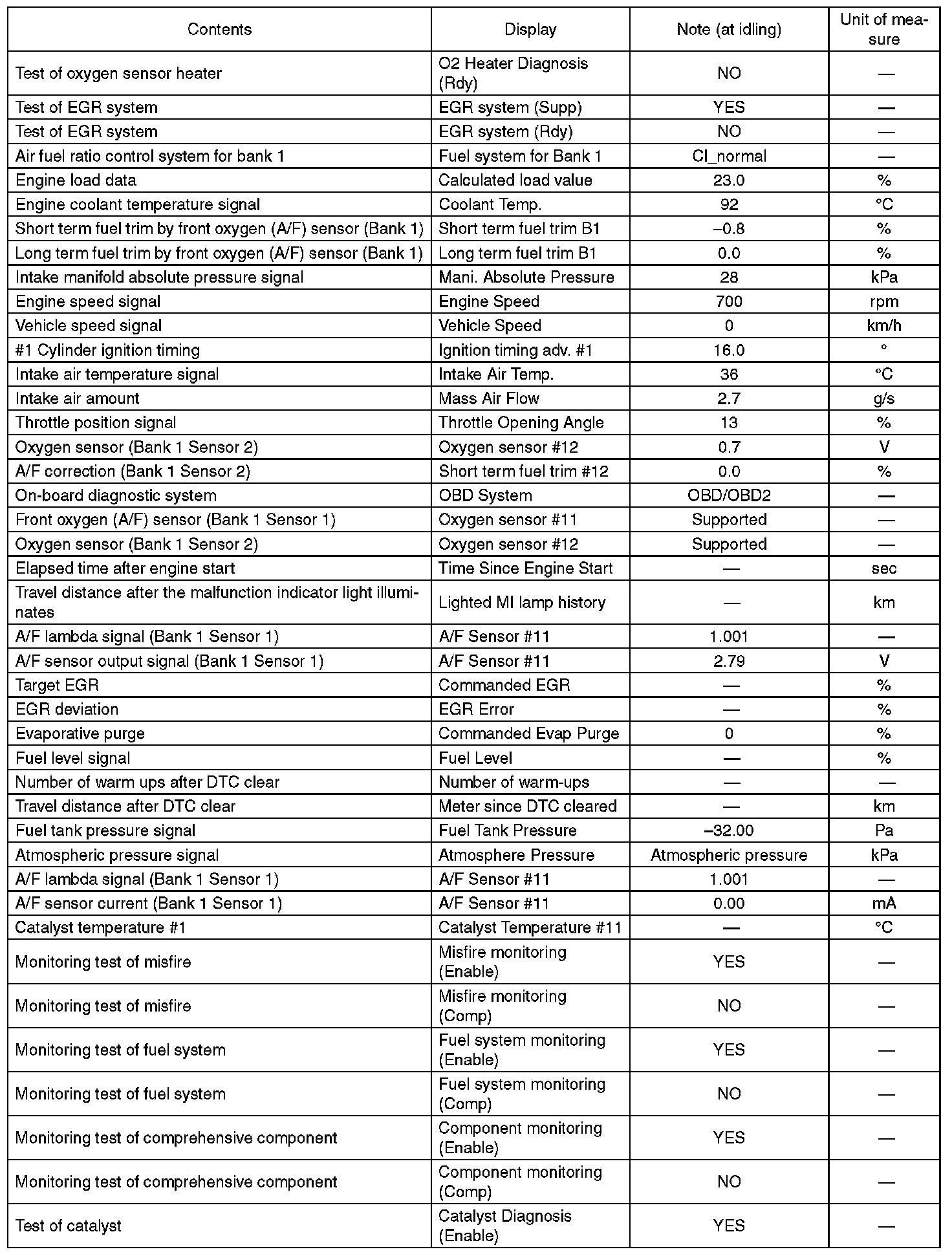 3. READ CURRENT DATA FOR ENGINE (OBD MODE)