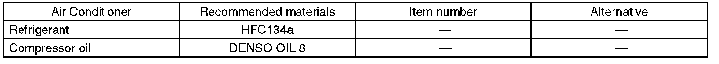Standard air conditioners on Subaru vehicles use HFC134a refrigerant. Do not mix it with other refrigerants. Also, do not use any compressor oil other than DENSO OIL 8.