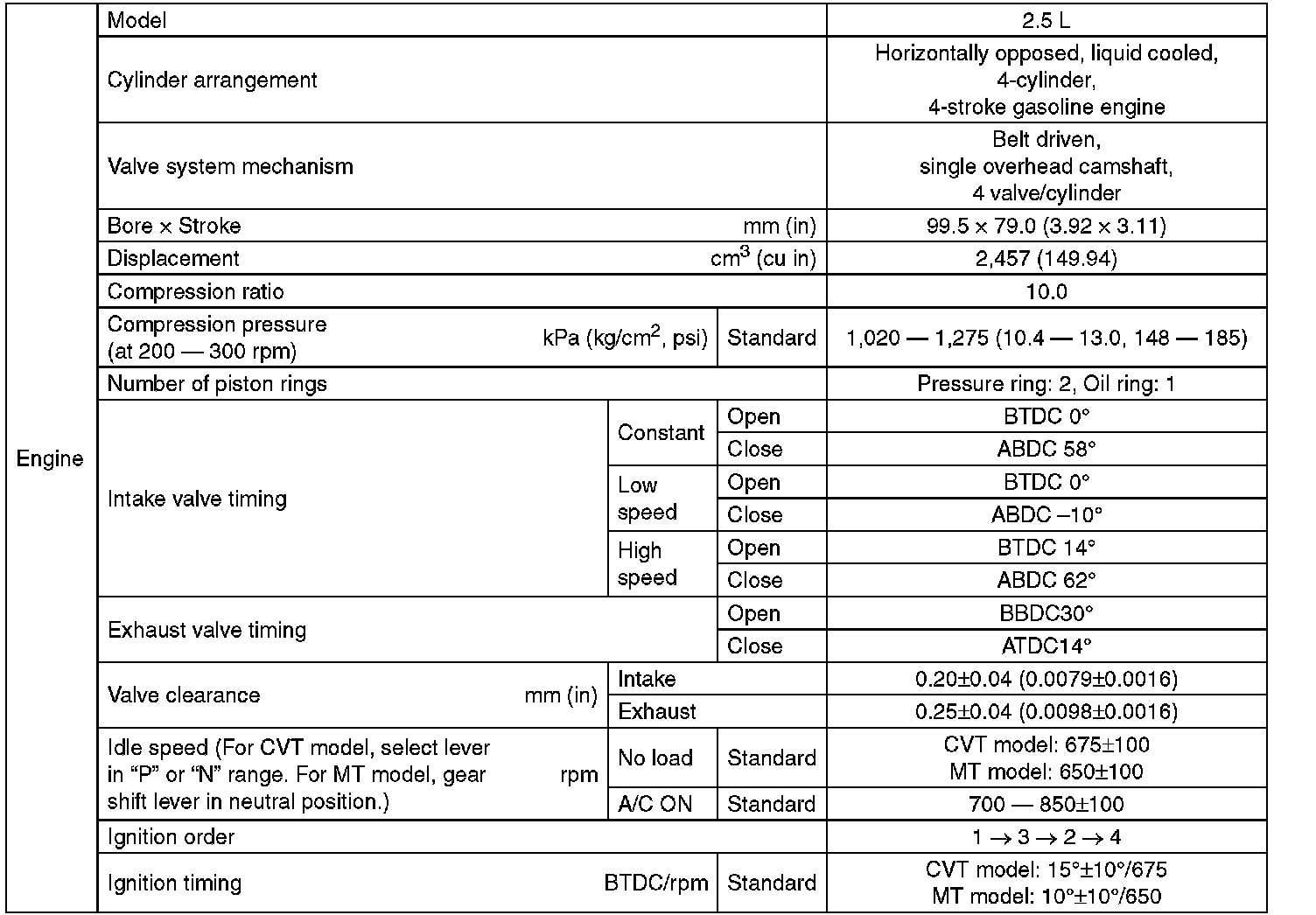 Outback F4-2.5L SOHC