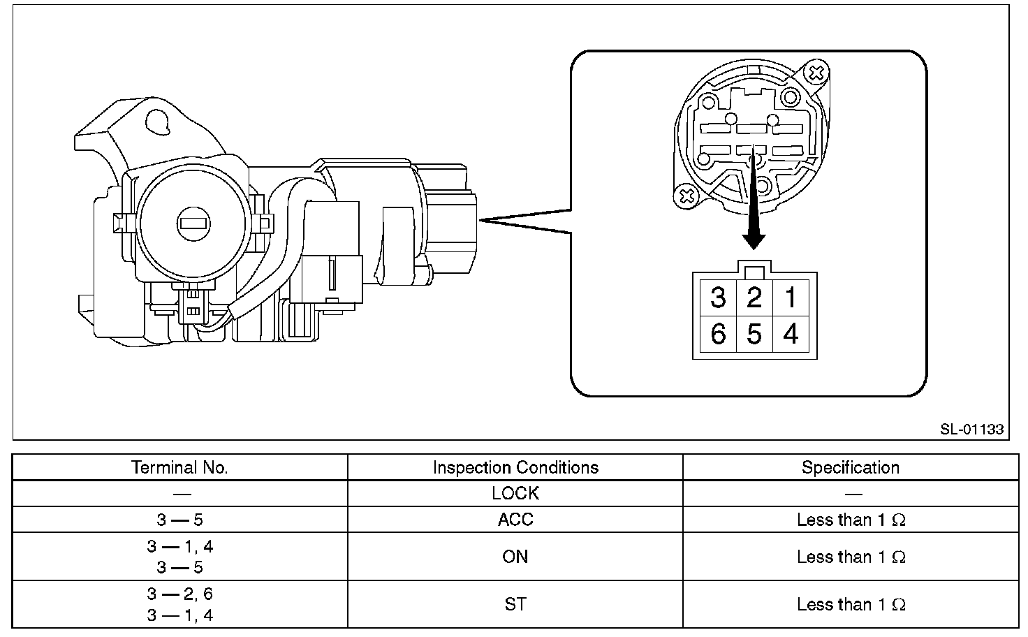 3. Replace the ignition switch if the inspection result is not within the standard value.