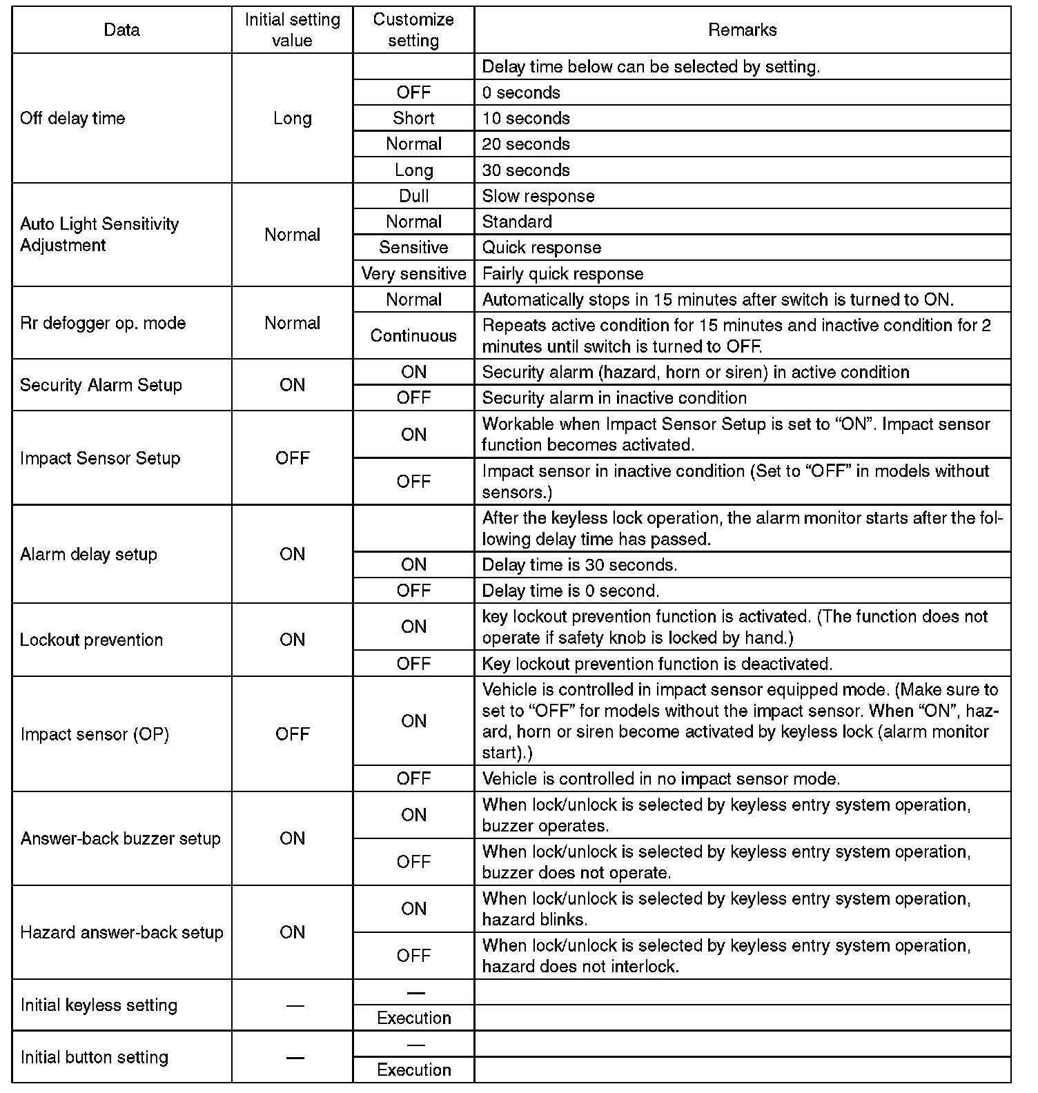 - Be sure not to change Factory initial setting except when installing a new body integrated unit.