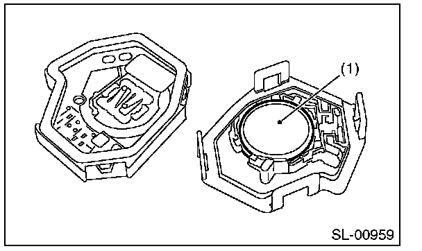 1. Disassemble the keyless transmitter, and take out the transmitter case (1).