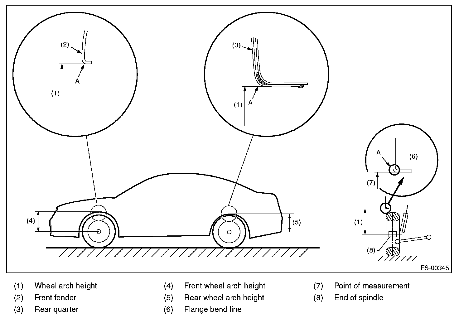 - Other items indicated in the specifications is not equipped with adjustment mechanisms. If other items exceed specifications, check the suspension parts and connections for deformation. If defective, replace with new parts.