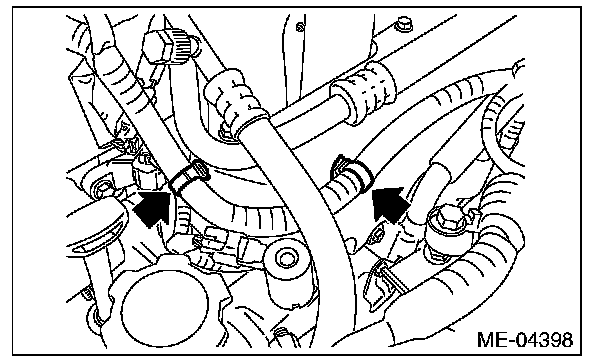 8. Disconnect the connectors of the oil temperature sensor, engine coolant temperature sensor and intake oil flow control solenoid valve LH.
