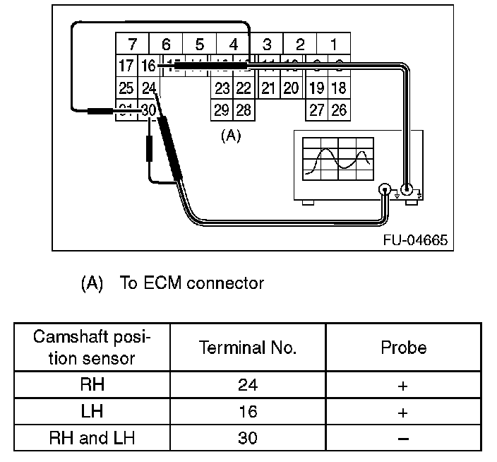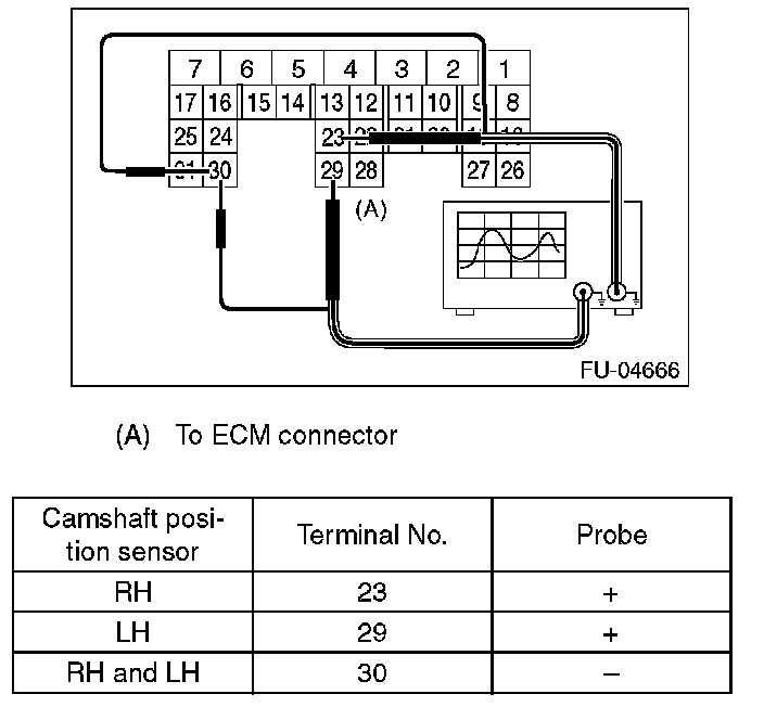 Home >> Subaru >> 2012 >> Outback F6-3.6L DOHC >> Repair and Diagnosis >> Powertrain Management >> Computers and Control Systems >> Camshaft Position Sensor >> Testing and Inspection