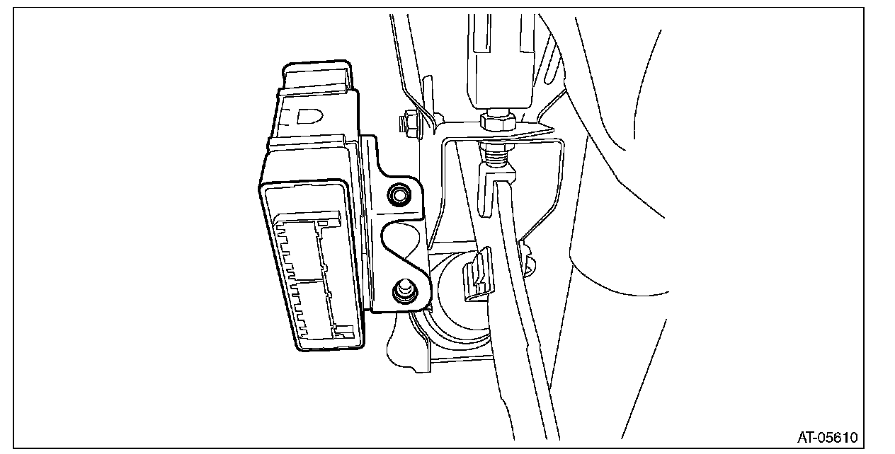 To avoid the damage to bracket and TCM, do not remove after installing TCM to bracket. If installed by mistake, the part must be replaced with a new part.