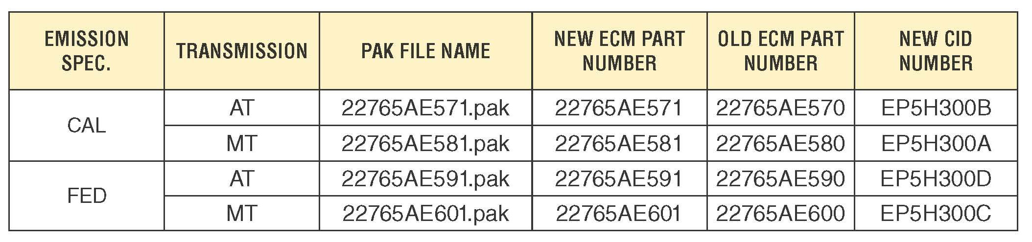 In the event of an ECM replacement, always confirm the new ECM has the most recent software and CID number installed before releasing the vehicle.