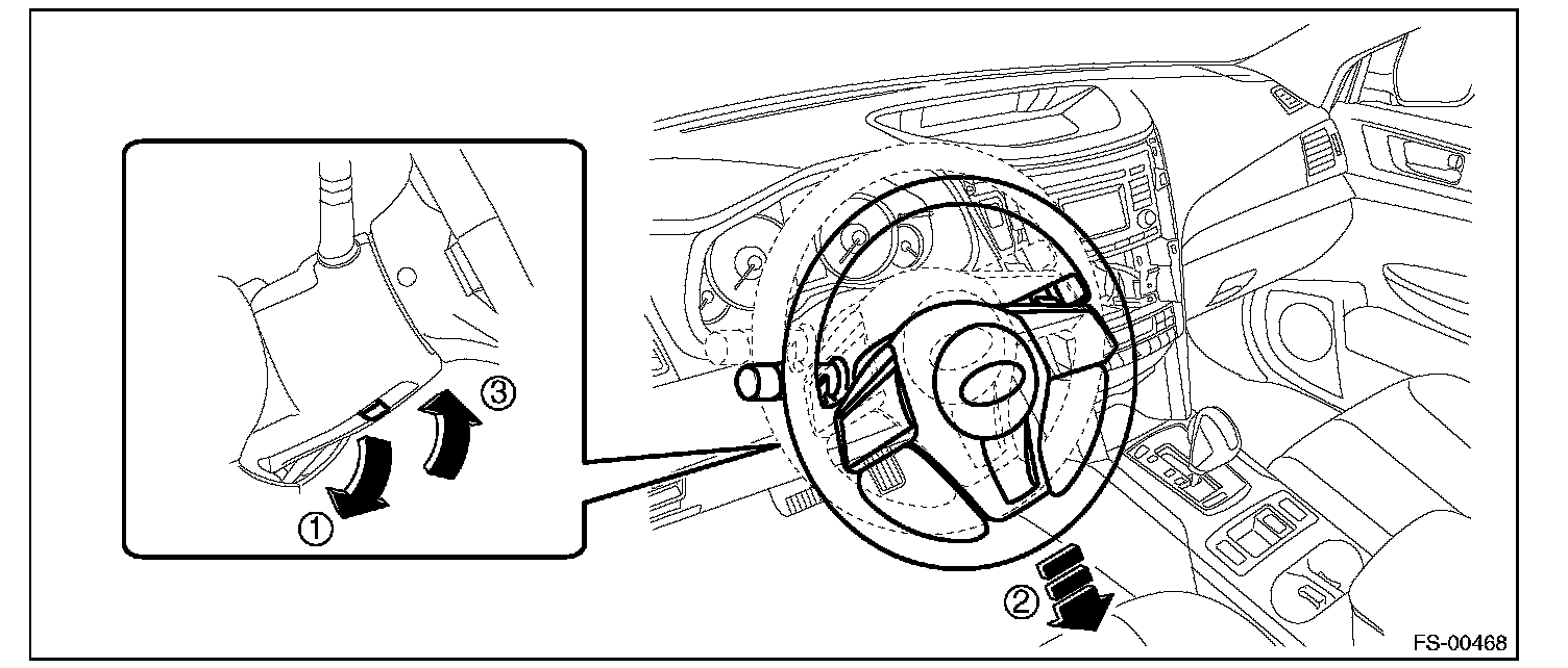 2) Adjust the tilt position of the steering column to the lowest position and lock the tilt lever.