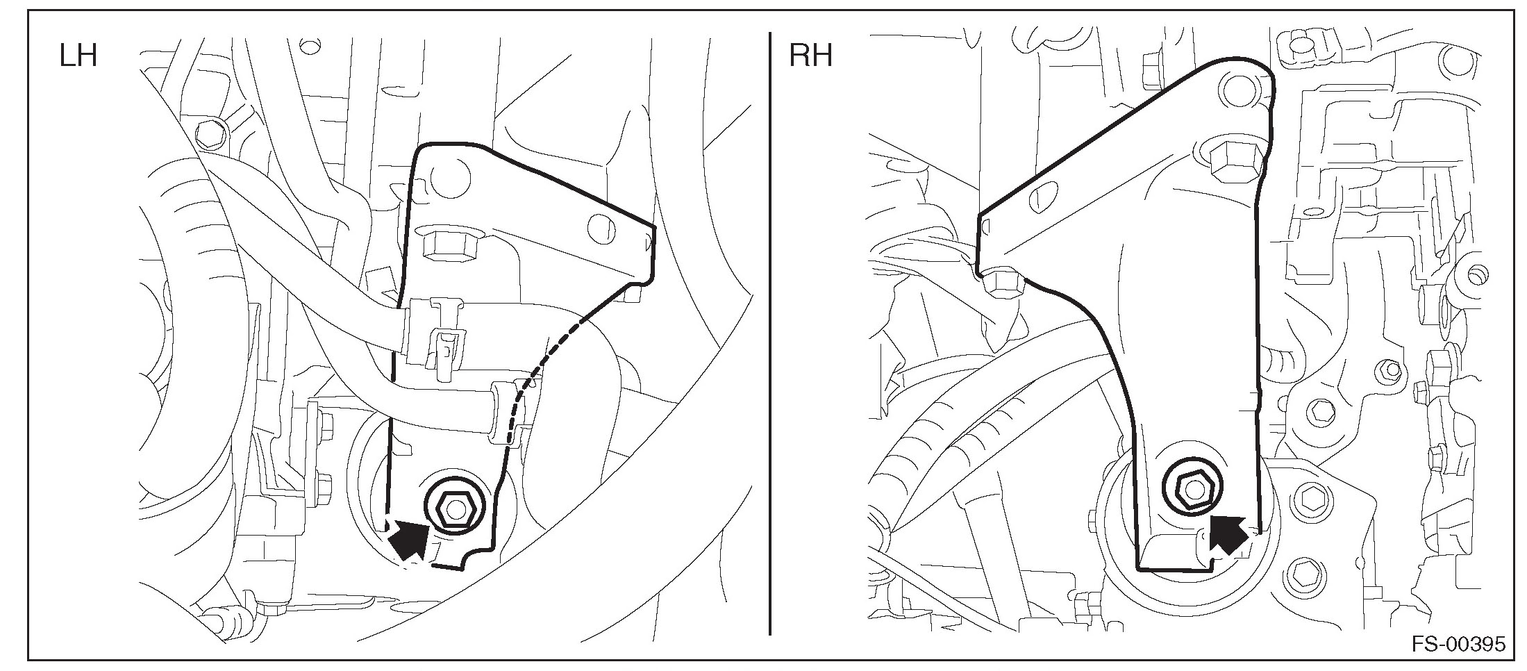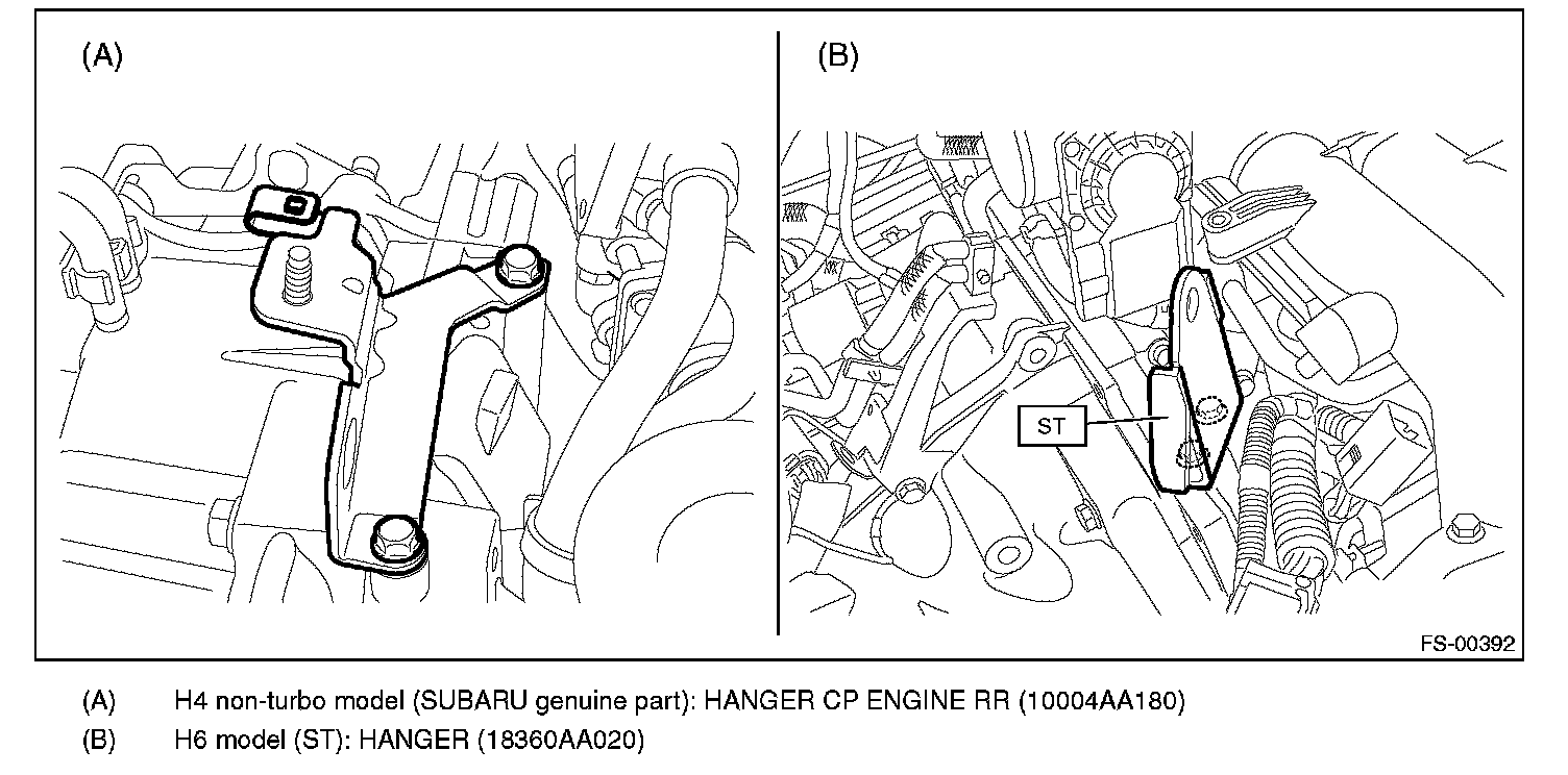 11) Replace the engine hanger installed on the engine with the SUBARU genuine engine hanger (H4 nonturbo model) or ST (H6 model).