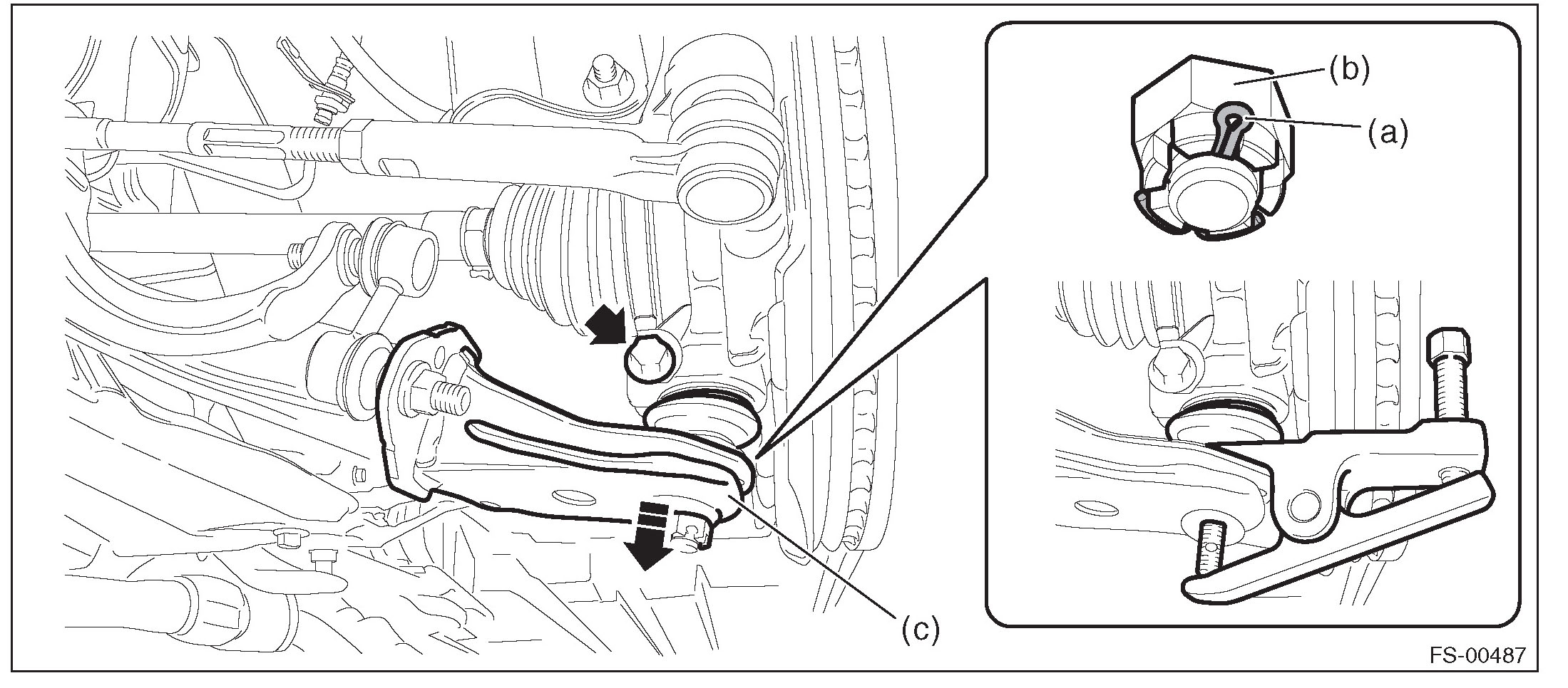 (3) Extract the tie-rod end (c) from the front axle housing.