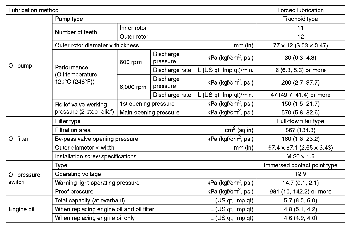 ^ Use 0W-20 (synthetic oil).
