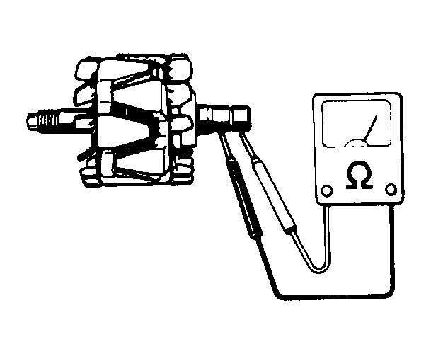 - Check rotor for open field windings by using an ohmmeter across slip rings. See Fig 1. Resistance should be 2.8-3.0 ohms.