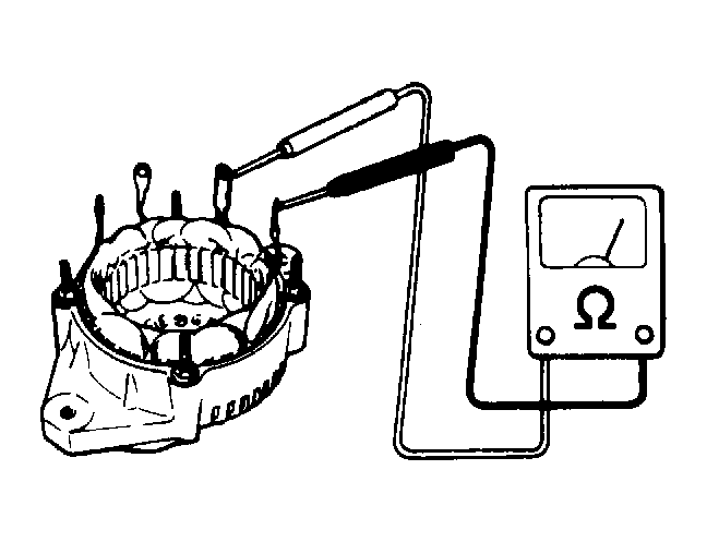 - Connect ohmmeter between 2 stator leads. See Fig 1. Ensure continuity exists between all stator leads. Connect ohmmeter between each stator lead and metal core. Ohmmeter should show no continuity. If continuity is indicated, replace stator.