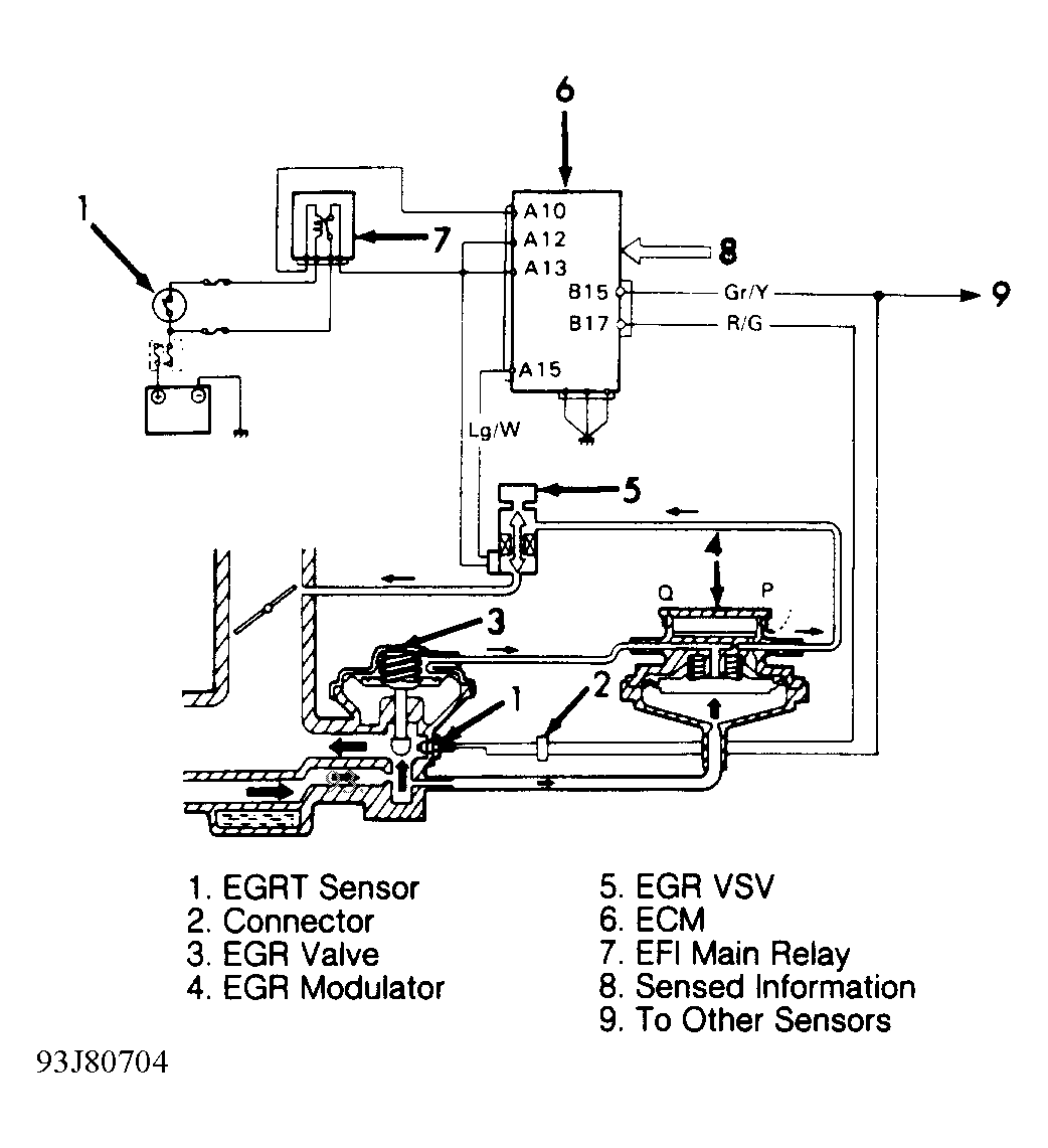 - If EGR valve and EGR modulator are okay, check EGR Vacuum Switching Valve (VSV). See EGR VACUUM SWITCHING VALVE (VSV).