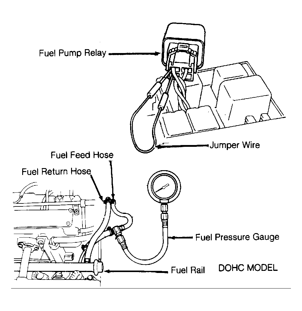 - Disengage harness connector from fuel pump relay from underneath fuse/relay box. See Figure and Figure . Loosen fuel tank filler cap to release tank vapor pressure. Start engine, and let it idle until it dies. Crank engine 2-3 more times to ensure fuel pressure is dissipated from system. Fuel system may now be opened safely. Cover fuel line, hose or fitting using shop towel to absorb leaking fuel when loosening. When repair is completed, reconnect relay.