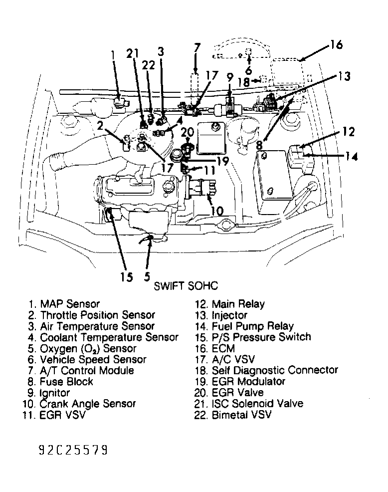 . On SOHC, remove air cleaner from throttle body. Disconnect fuel hose from throttle body. On DOHC, remove ISC solenoid valve and EGR modulator bracket (if equipped). See Figure