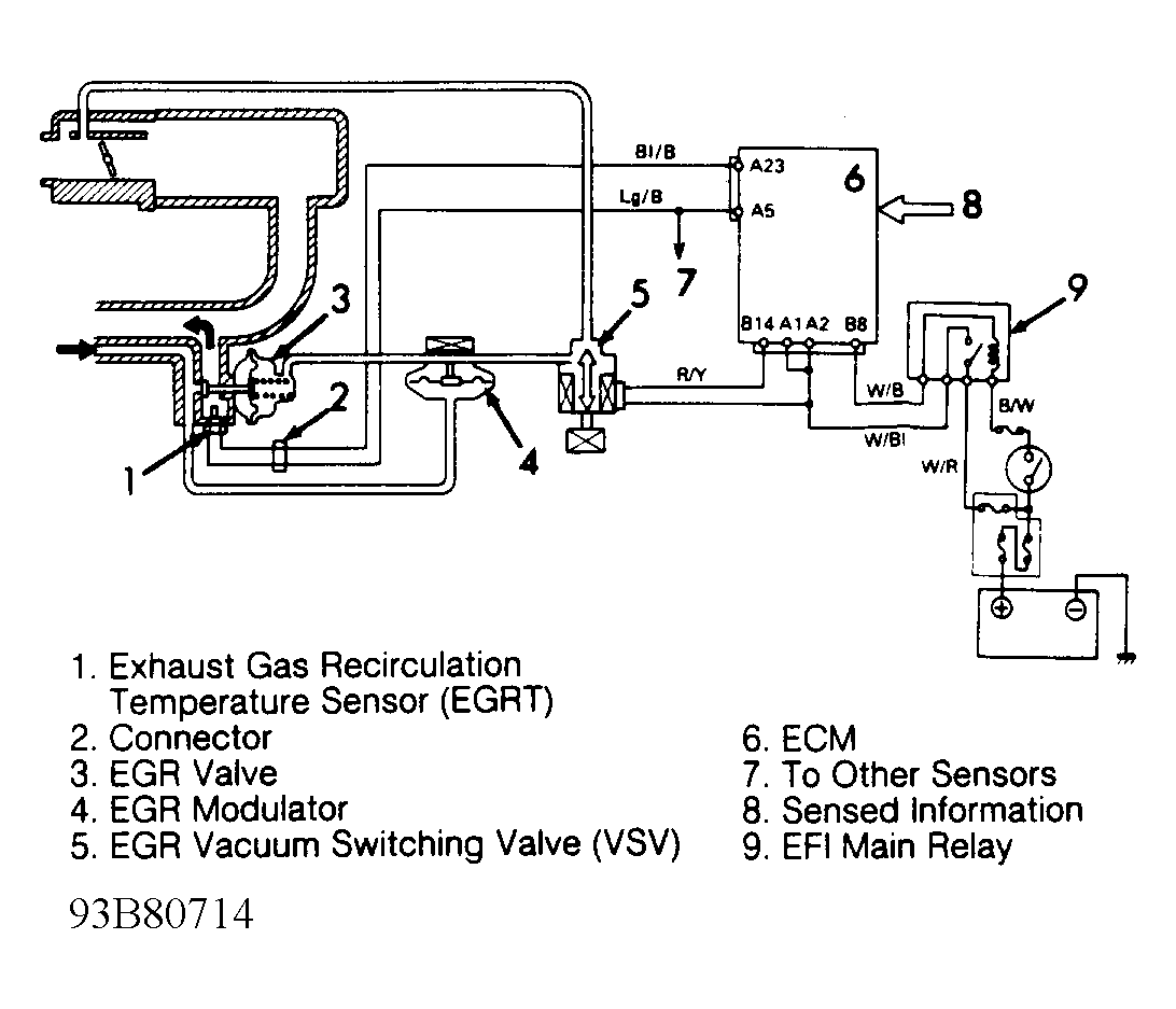 - If EGR valve and EGR modulator are okay, check EGR Vacuum Switching Valve (VSV). See EGR VACUUM SWITCHING VALVE (VSV).