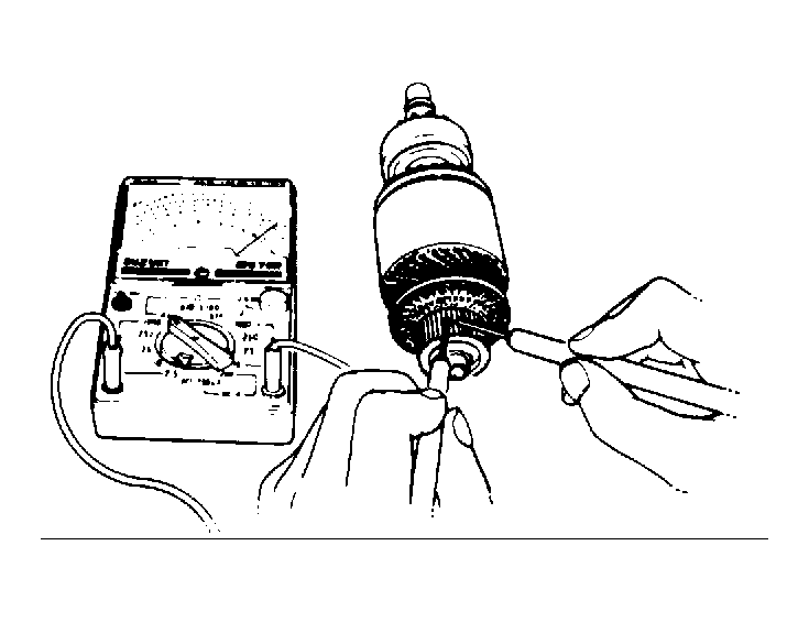Check for continuity between individual segments of brush end of armature. See Figure . If there is continuity between all segments, armature is good. If there is no continuity, there is an open circuit. Replace armature.