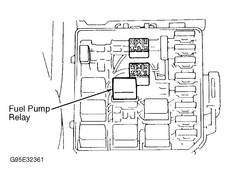 2. Remove fuel pump relay from fuse/relay box. See Fig 1 . Loosen fuel tank filler cap to release tank vapor pressure. Start engine, and let idle until it dies. Crank engine 2-3 more times to ensure fuel pressure is relieved from system. Fuel system may now be opened safely. Cover fuel line, hose or fitting using shop towel to absorb leaking fuel when loosening. When repair is completed, reconnect relay.