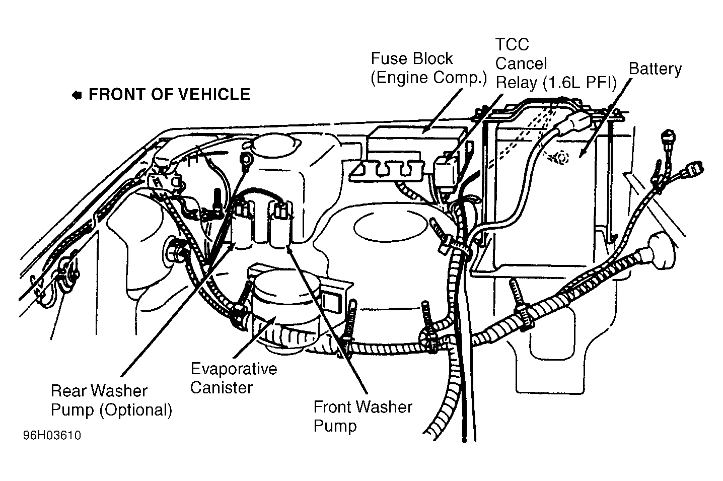 | Passenger Compartment Fuse Block (1.6L PFI) | Under left side of dash. See Figure . |