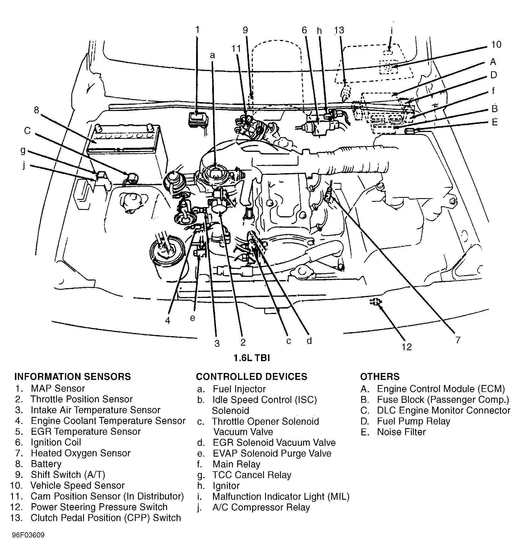 Engine Control Module (ECM) (1.6L TBI) Behind left side of dash. See Figure .