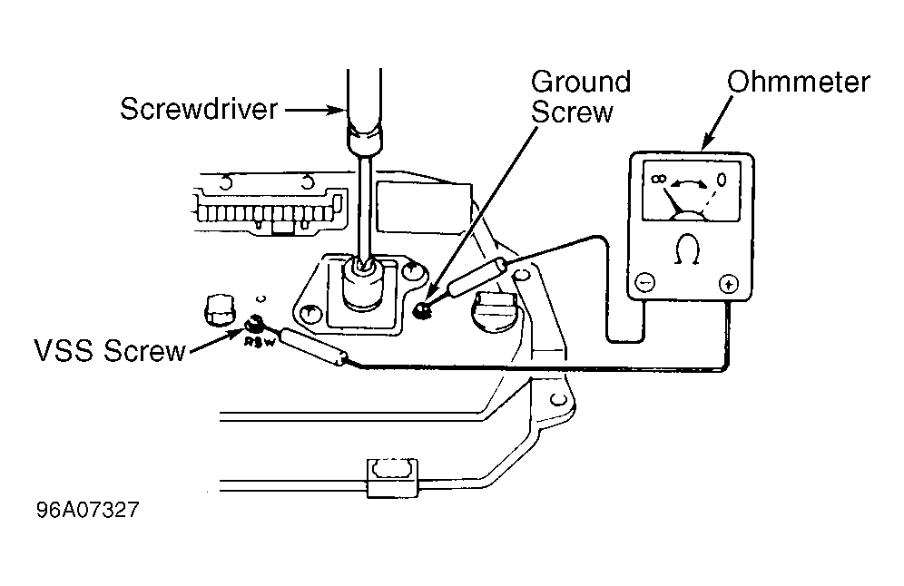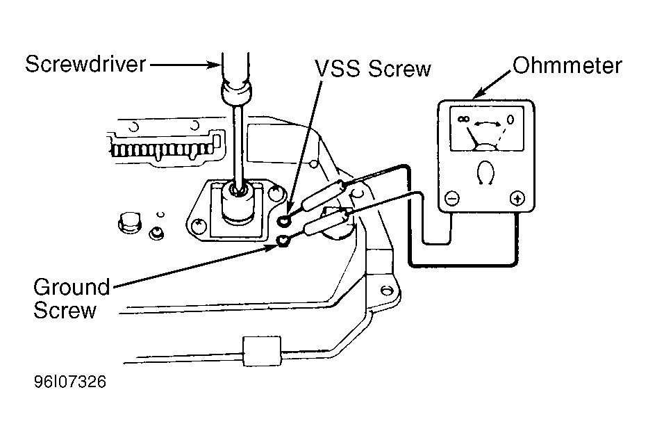- Remove combination meter from instrument panel. Using ohmmeter, check continuity between ground screw and VSS screw while rotating speedometer cable shaft with a screwdriver. SeeFig 1 -Fig 2 .