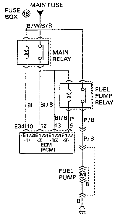 ECM controls ON/OFF operation of the fuel pump by turning it ON via the fuel pump relay under one of the following conditions.