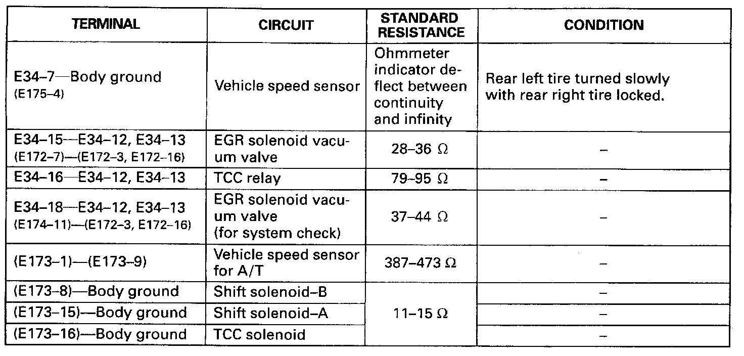 2) Check resistance between each pair of terminals of disconnected couplers as listed in the above table.