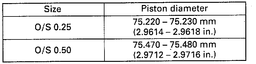 Using micrometer, measure piston diameter. Calculate cylinder bore diameter to be rebored as follows: