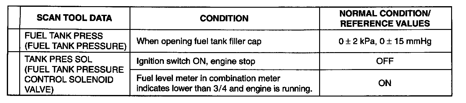 Also, conditions in the table that can be checked by the scan tool are those detected by ECM and output from ECM as commands and there may be cases where the engine or actuator is not operating (in the condition) as indicated by the scan tool. Be sure to use the timing light to check the ignition timing.