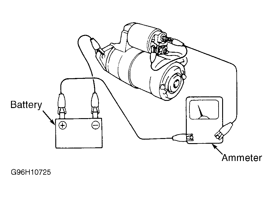 - Connect ammeter, battery voltage and ground to starter. See Fig 1 . Ensure starter rotates smoothly, drive pinion moves outward and no-load current draw is within specification. See STARTER SPECIFICATIONS .
