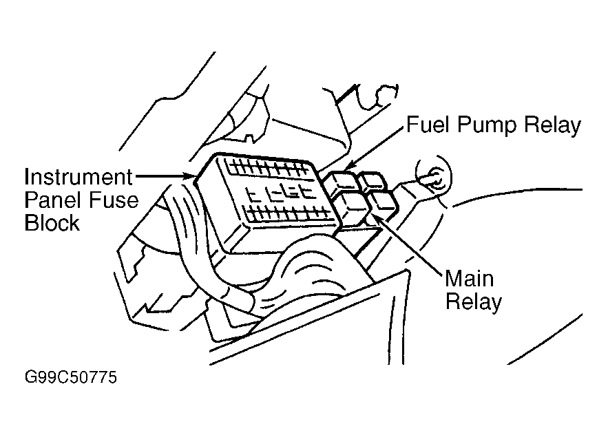 Both fuel pump and main relays are identical. Following test procedures apply to both.