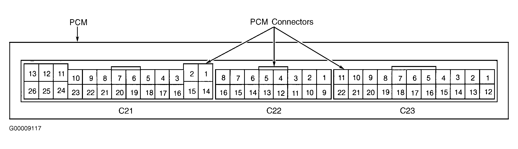 - Check for high resistance in Light Green, Light Green/White or Light Green/Black wires between TP sensor and PCM 16-pin connector C22 terminals No. 1, No. 6 or No. 9. See Figure. Repair suspect wire as necessary and go to DTC CONFIRMATION TEST . If wires are okay, replace PCM and go to DTC CONFIRMATION TEST .