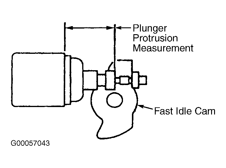 - Check throttle valve lever moves freely. Measure plunger protrusion of fast idle control arm with coolant temperature at 75-78 °F (23-26°C). See Fig 1 . Plunger measurement should be 1.048-1078" (26.6-27.4 mm).