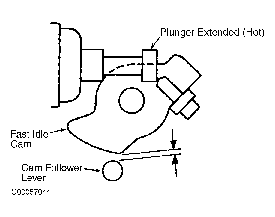 - Start engine, check that higher than normal idle speed exist. As engine coolant temperature raise, fast idle speed should gradually reduce. As engine coolant temperatures reach 126-154°F (52-68°C), check to make sure fast control cam is off cam follower lever. See Fig 2 . If conditions are not as specified in steps 1 and 2, valve could be faulty or coolant passage could be blocked. If no problem exist with coolant passage, replace throttle body assembly.