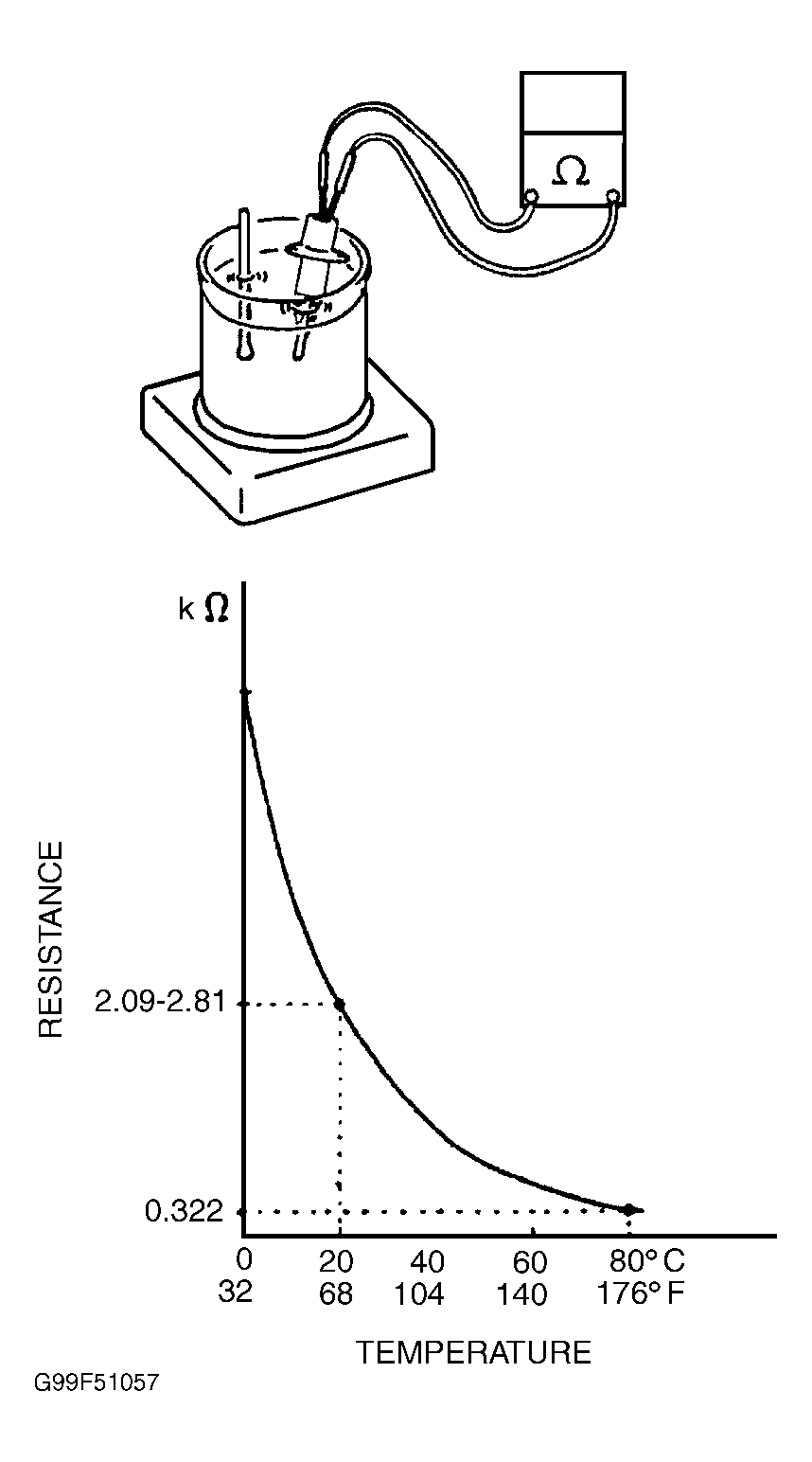 | Sensor Temperature - °F (°C) | Resistance - k/ohms | |