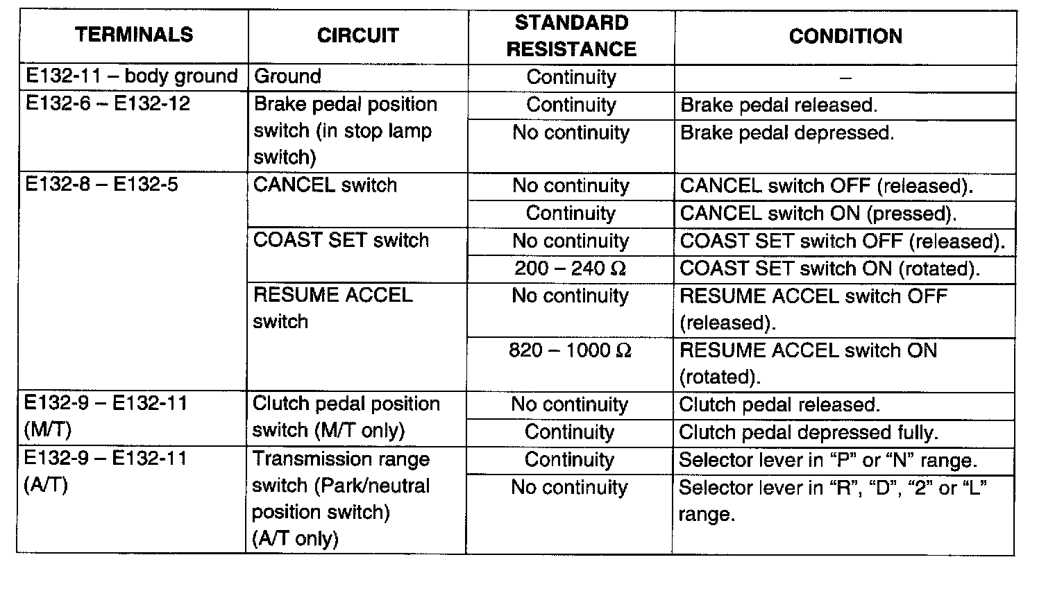 CAUTION: Never touch terminals of cruise control module itself or connect voltmeter or ohmmeter.