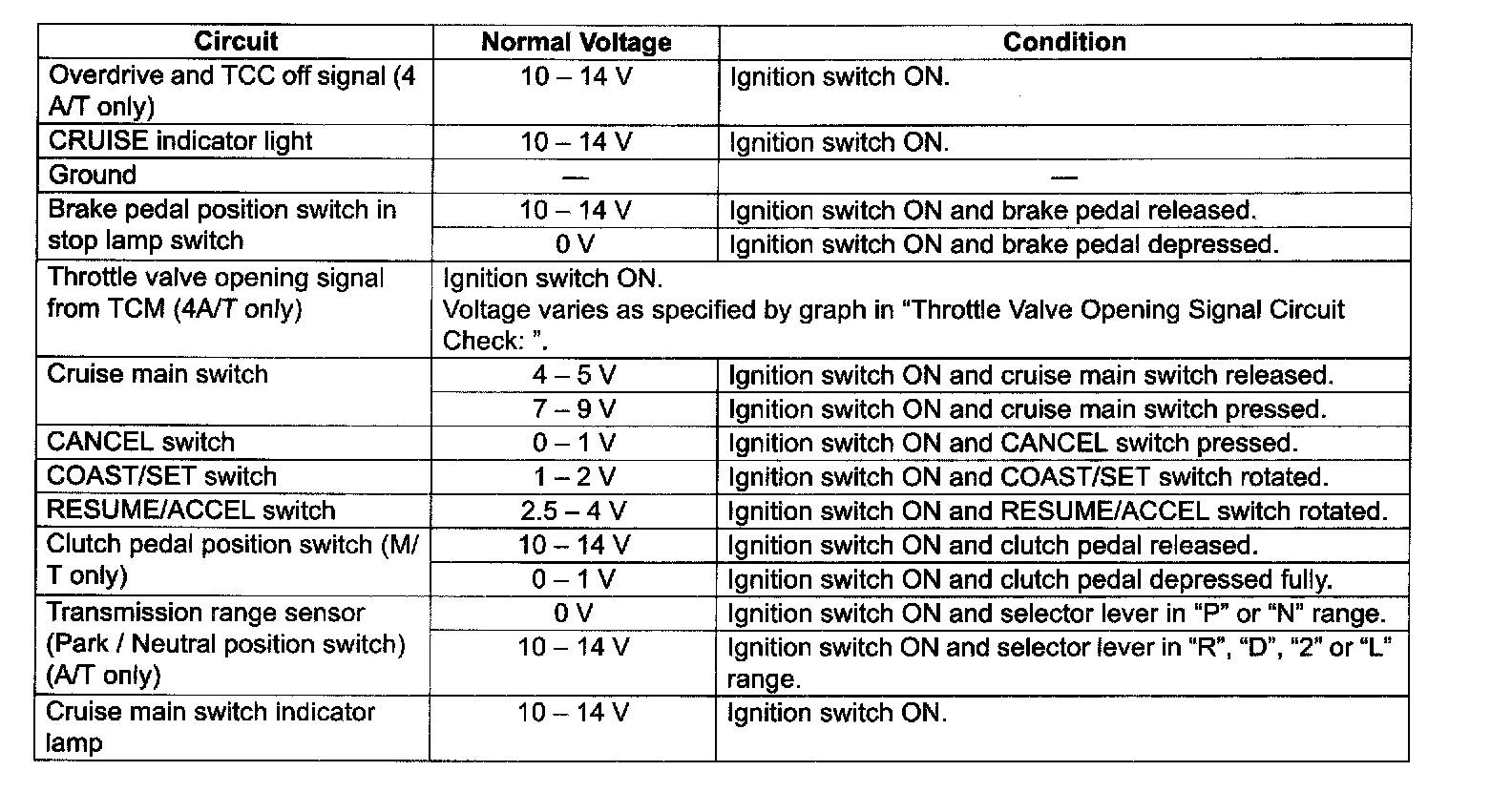Home >> Suzuki >> 2002 >> Aerio L4-2.0L >> Repair and Diagnosis >> Cruise Control >> Relays and Modules - Cruise Control >> Cruise Control Module >> Testing and Inspection