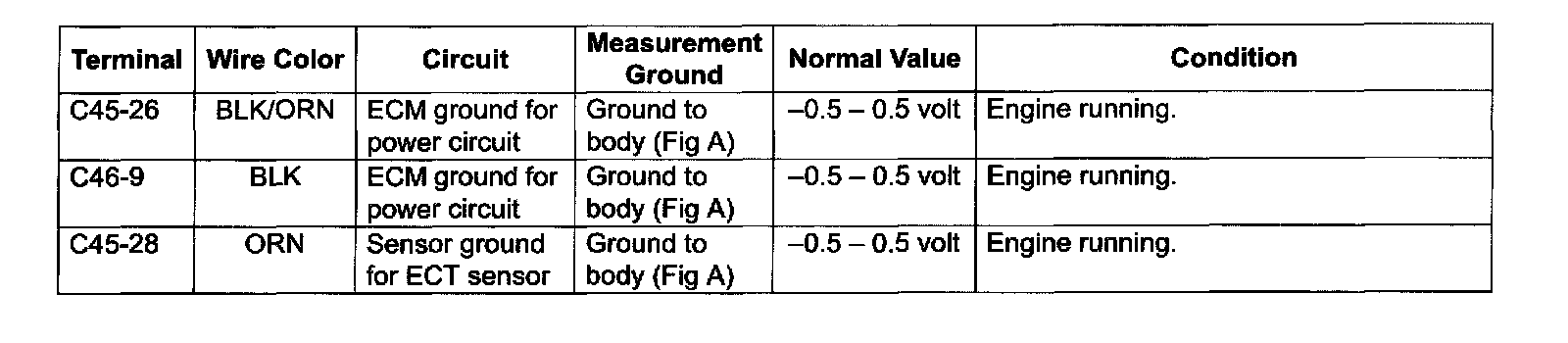 NOTE: As each terminal voltage is affected by the battery voltage, confirm that the battery voltage is 11 V or more when ignition switch is ON position.