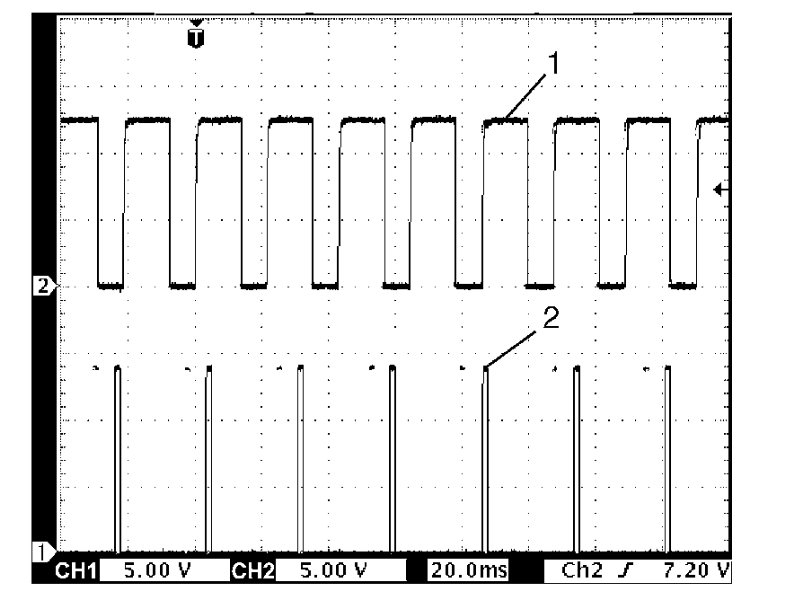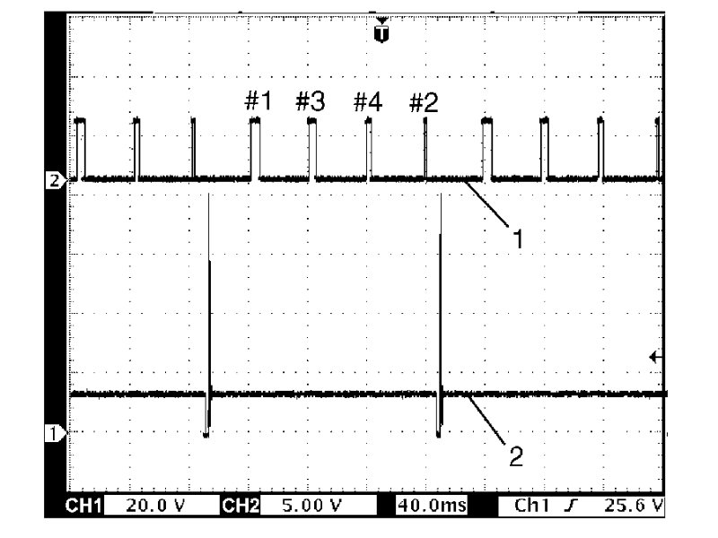 Fuel injector signal (1) at engine idling